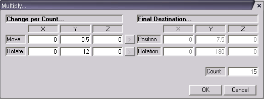 To start with, let's create a couple of brushes. One will be the actual step, and the other will be a small poll that will connect one step to the next. Next, we select our two brushes. ![]() Now we get to the multiplying. Click either the Multiply Brushes option from the Modify menu or click the toolbar button (shown below). ![]() The Multiply Brushes screen will appear. Let's go over this screen before continuing. ![]() The Change Per Count side of the screen allows you to enter in how much the new brush(es) should move and rotate each time the brush is multiplied. The Final Destination side of the screen shows you how far the last brush will be moved and roated. You can also enter in values to the final destination and it will be reversed to give you the move and rotate per count values. The Count is the actual number of times to multiply the brush. This is esentially creating a copy of the brush, moving the copy, rotating the copy Count times.